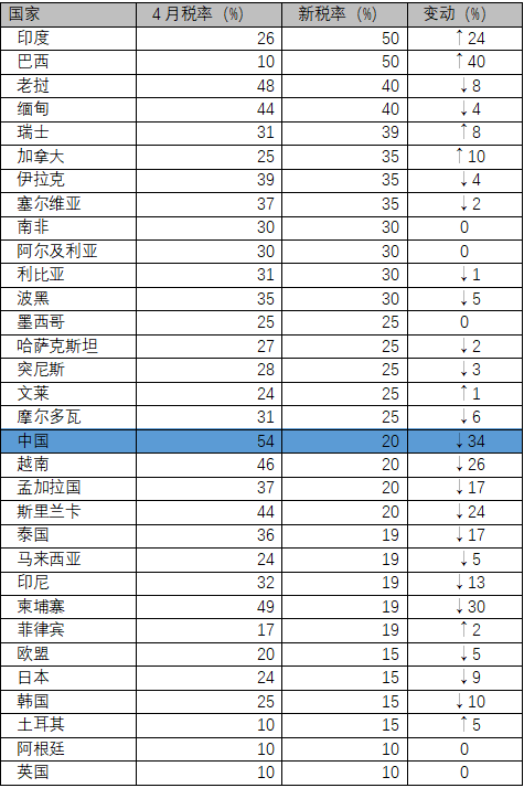 美国对主要贸易伙伴最新关税一览表