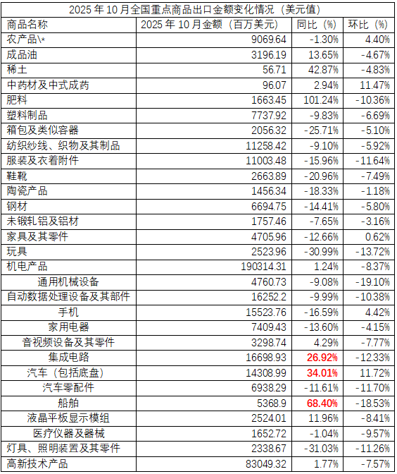 不过,暂停一年,并非贸易战的终结,这34个百分点的降幅也不是回归舒适区,而是为中国制造业提供换挡提速、重塑竞争力的新窗口。从最新公布的出口数据中,可以看出二个特点:一是从出口地看,今年1-10月,非洲对我国出口的拉动从去年的0.2%大幅上升至1.3%,在中非合作深化的背景下,非洲正在成为我国出口“突围”新的增长点。二是从行业看,具备供给优势和科技含量较高的产品出口韧性较强,10月,在多数产品出口增速回落的背景下,机电设备和高新技术产品依然维持正增长,其中,船舶、汽车、集成电路同比增速分别为68.40%、34.01%、26.92%,产品结构升级下出口的“新质”成色更高。除了集中精力,攻关卡脖子行业外,多元化出口地和商品、服务的提质升级,也是应对关税的有效手段。